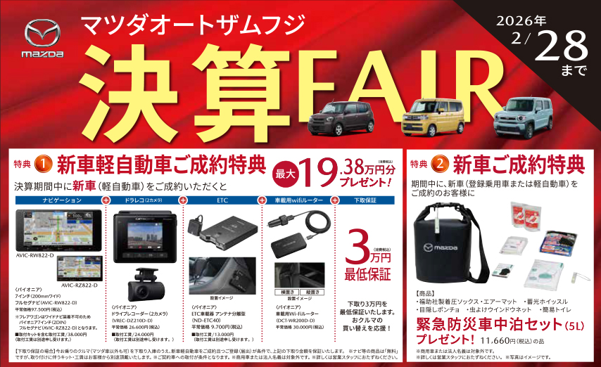 2026年2月28日(土)までの期間、毎年恒例の決算フェアを開催いたします。 とってもお得な決算価格に加えて、...